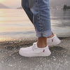 Wenn deine Schuhe schmutzig sind, kannst du sie einfach im Schonwaschgang in deiner Waschmaschine waschen (nicht bei Schuhen mit Kunstleder).