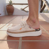 Unsere Innensohle ist mit echtem Kork beschichtet – einem nachhaltigen Naturmaterial, das nicht nur angenehm leicht, sondern auch atmungsaktiv und temperaturausgleichend ist. Kork passt sich sanft deinem Fuß an und unterstützt ein gesundes, trockenes Fußklima – selbst bei längerem Tragen.